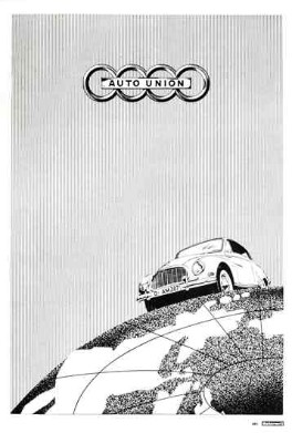 .Auch der Auto Union gelingt es im Laufe der 50er, sich in der automobilen Mittelklasse zu etablieren. Vor dem Krieg durch den Zusammenschluss der Firmen Audi, DKW, Horch und Wanderer, die durch das Firmenlogo mit den vier ineinander verschlungen Ringen symbolisiert werden, zweitgrößter Hersteller im Kraftfahrzeugbau, werden 1945 die in der sowjetischen Besatzungszone gelegenen Betriebe beschlagnahmt und weitestgehend demontiert. Dem Neubeginn in Ingolstadt mit dem „Zentraldepot für Auto Union Ersatzteile“ folgt die Produktion des „DKW Meisterklasse“,