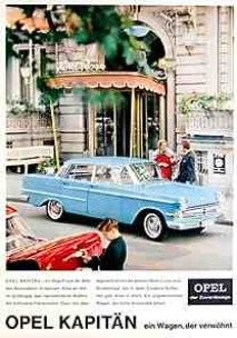 und damit der Mittelpunkt einer aufwändig in Szene gesetzten und dadurch ausgesprochen sehenswerten Anzeigenserie, die bevorzugt in „gehobeneren“ Zeitschriften geschaltet wird. Dabei ist es erst gut zehn Jahre her, dass bei Opel ausschließlich Kühlschränke unter dem Markennamen „Frigidaire“ die Werkshallen verließen. 1937 noch die zahlenmäßige Nummer Eins in der Zulassungsstatistik, hat man ebenfalls mit den Kriegsfolgen zu kämpfen. So verliert der Konzern die Produktionsanlagen für den Kadett als Reparationsleistung an die Sowjetunion, wo das Auto in der Folge als Moskwitsch 400 vom Band läuft. Dank der engen Verknüpfung mit dem amerikanischen Mutterkonzern General Motors kann jedoch bereits ab 1947 wieder die Produktion des Olympia aufgenommen werden, einem Vorkriegsmodell, dessen Namensgebung noch von den Olympischen Spielen im Jahr 1936 herrührt. Doch Opel versteht es, aus der Not eine Tugend zu machen und demonstriert die hohe Kunst der Werbung. Unter der Überschrift „Bewährt ist mehr als gut“ wird in einer Anzeige die Abbildung eines Motors präsentiert: „Vor 18 Jahren eine europäische Sensation durch hängende Ventile und verschleißmindernden kurzen Hub, heute in über 450000 Stück produziert: Nur der 1,5 Ltr. OPEL-Motor des Olympia kann in seiner Klasse auf diese Bewährung zurückblicken.“ Auch in der Folgezeit setzt der Konzern auf Kontinuität: Der Slogan „Opel der Zuverlässige“ wird zu einem fixen Begriff und ist bis in die 60er Jahre hinein fester Bestandteil sämtlicher Opel-Anzeigen