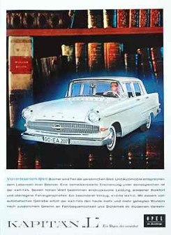 Bei Opel kann man sich dem allgemeinen Trend zum Luxus ebenfalls nicht verschließen. Dort ist 1956/57 das Modell Kapitän „der Star seiner Klasse“