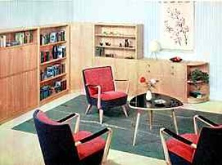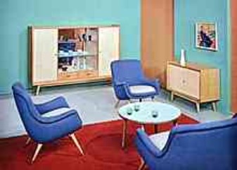 | | |  | | | | | | Und so sah 1958 vielfach die Wohn-Realität aus: "Margot, Klaus, Lore, Renate" - zwar mit modernen Möbeln, aber in einer sehr beengten Räumlichkeit