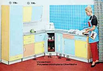 | | Tielsa - "Die meistgekaufte Resopal-Küche der Welt" | | "Kleinküche" | | Versandhaus Quelle - "Vorderfront Polyester-Hochglanz-Oberfläche" |