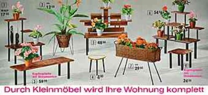 | |  | | "Durch Kleinmöbel wird Ihre Wohnung komplett" | | Zeitungsständer, Telefontisch, Lesewagen