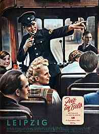 | | Zeit im Bild - Titel: "Leipzig die von den Amerikanern stark zerbombte Handelsmetropole, holt von Messe zu Messe tüchtig auf. Der Straßenbahner Siegfried (...) will es bis zum leitenden Verkehrsfachmann bringen. (...) ...welche Chancen sich strebsamen Jugendlichen in unserer Heimat bieten, beleuchten wir auf Seite 7." |