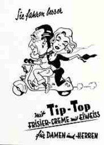 | | Sie fahren besser mit Tip-Top Frisier-Creme mit Eiweiss für Damen und Herren", Zeitschriftenwerbung