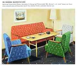 | | | | "KULTUR im HEIM", Zeitschrift - Titelbild: "Polstermöbel, das Gebiet der Innenarchitektur, auf dem in der Vergangenheit wohl am meisten "gesündigt" wurde - gestalterisch natürlich. Heute bieten unsere führenden Entwurfsbüros und Gestalter wahre Meisterstücke, das Gute setzt sich durch." |