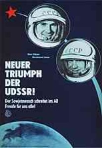 | | "Neuer Triumph der UDSSR! Der Sowjetmensch schreitet ins All - Freude für uns alle!", Plakatmotiv