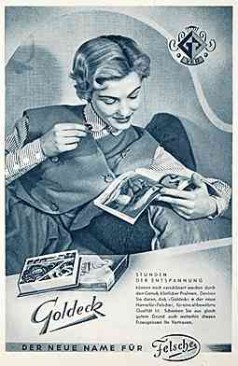 | |  | | Goldeck Pralinen: "Wir 5 - Ein Spiel mit süssem Ziel" - Die Kombination von "250 Gramm Pralinen" und einem "unterhaltenden, lehrreichen Würfelspiel" stammt aus dem Jahr 1956 und wurde vom VEB SÜSSWARENFABRIK GOLDECK in Leipzig produziert. | | 1953 wurde die Firma W. Felsche zum VEB Goldeck verstaatlicht. "Goldeck - der neue Name für Felsche" - Zeitschriftenwerbung (1955)