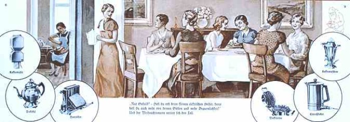 "Die Zubereitung kann unmittelbar am Kaffeetisch erfolgen: das macht es der Hausfrau leicht, sich ihren Gästen zu widmen."