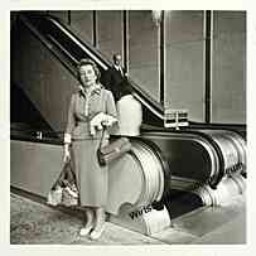 | |  | Rolltreppen waren Ende der 50er Jaher noch etwas Besonderes → | | zwei Freundinnen fotografieren sich gegenseitig davor