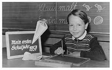 | | "Zur Erinnerung an unseren Schulanfang" (in Karl-Marx-Stadt / DDR) | | Konfimation | | Rückseitig handschriftlich: "Franzerl mit Klein-Sissy am Weizberg im August 1957" |