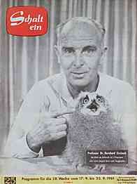 | Fernseherwerbung (1959) | | Fernsehzeitung "Schalt ein" - "Professor Dr. Bernhard Grzimek berichtet am Mittwoch im 1.Programm über seine jüngste Reise nach Tanganyika (1961) |
