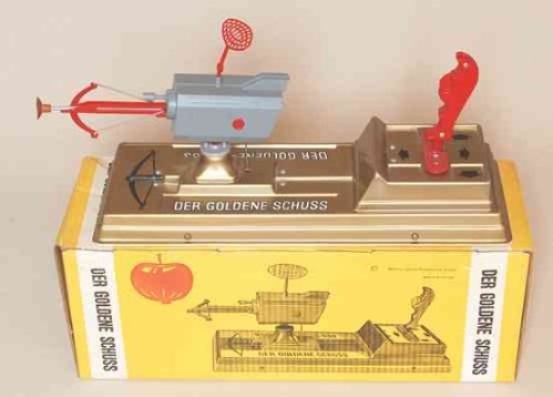 Auf diese Weise gab es Ausscheidungskämpfe gegen Saalkandidaten und der treffsicherste Schütze des Abends hatte im Finale die Möglichkeit, durch das Zerschießen eines dünnen Fadens den daran hängenden Geldsack zu Fall zu bringen und somit die darin enthaltene Summe zu gewinnen. - Erster Spielleiter war der Holländer Lou van Burg,