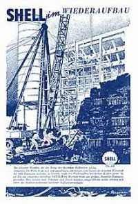 | | "Shell im Wiederaufbau" - Die schweren Wunden, die der Krieg den deutschen Raffinerien schlug, vernarben. Der Wille, heute auf- und abzubauen, um morgen zum Nutzen der deutschen Wirtschaft die volle Kapazität entfalten zu können, treibt den Wiederaufbau mit starken Kräften voran." | | Das Nachtkabarett, Berlin-Neukölln - Programmheft |