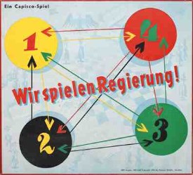 | | Das "Capisco-Spiel" "Wir spielen Regierung!" sorgte nach seinem Erscheinen im Jahr 1952 für einen großen Medienwirbel und war sowohl der "Zeit" als auch dem "Spiegel" eine ausführliche Berichterstattung wert (zu den online-Veröffentlichungen: DIE ZEIT, DER SPIEGEL). | | "Die große und kleine Freundin zum Ankleiden", Ausschneidepuppen (schätzungsweise um 1952) - Mehr Ankleidepuppen / Paperdolls HIER | | Puppenwagen, Werbefoto |
