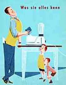 "Warum ist die deutsche Frau so begehrt?" "Kaum eine Frau in der Welt widmet sich ihrem Haushalt mit so viel Liebe wie die deutsche Hausfrau. Das Wohlergehen der Familie, das Glück des Mannes, die Erziehung der Kinder und die Behaglichkeit des Haushaltes, das alles ist für sie Inhalt und Erfüllung ihres Lebens als Frau." - Werbeprospekt der Firma Henkel - Mehr dazu HIER (schätzungsweise um 1956)