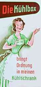 | | Hünersdorff-Bührer Plastik- und Metallwarenfabrik - "Die kühlbox bringt Ordnung in meinen Kühlschrank", Faltblatt (schätzungsweise um 1956)