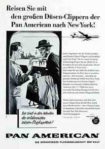 | | "Reisen Sie mit den großen Düsen-Clippern der Pan American nach New York!"