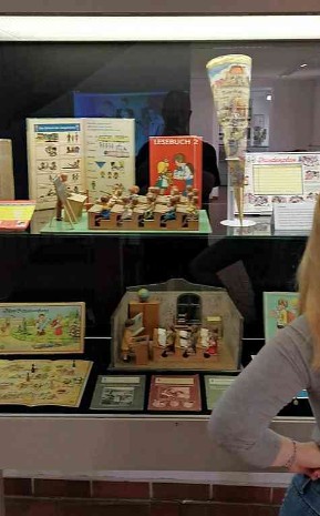 | Impressionen der Ausstellung im Museum Petersberg: Junge Pioniere als Vorbilder in Schulbüchern |