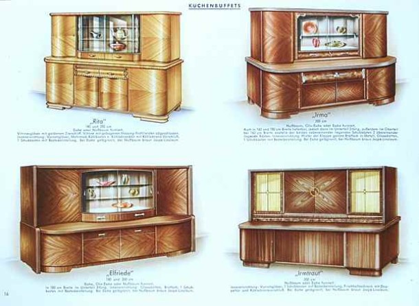 | Küchenbuffets "Rita", "Irma", "Elfriede", "Irmtraut" (frühe 1950er Jahre) |