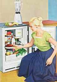 "Die motorisierte Hausfrau" "Man kann sie täglich sehen, die Hausfrau im Auto, auf dem Motorroller, auf dem Moped beim Einholen. Zeit ist Geld, und motorisiert zu sein, ein Vergnügen. Aber es ist merkwürdig, daß so manche dieser fortschrittlichen Hausfrauen in der Küche immer noch mit veralteten Werkzeugen arbeiten, wie Rührlöffeln, Schneeschlägern, Reiben, Schnitzelmessern und dergl., die sie zwar sehr geschickt handhaben, die aber nicht motorisiert sind. Diese Hausfrauen nehmen Zeitverlust und Einbuße an Geld und Arbeitsfreude in Kauf, anstatt ganz ernstlich an die Anschaffung einer Bosch-Küchenmaschine oder eines Bosch-Kühlschrankes zu denken. (...) Zeit- und arbeitssparende BOSCH-Erzeugnisse, wie BOSCH-Kühlschränke und BOSCH-Küchenmaschine, dienen dem Fortschritt, der Gesundheit und dem Wohlbehagen." - Zeitschriftenwerbung (1955)