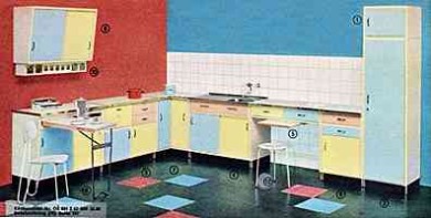 | | "Kleinküche (1961) | | "Die neuzeitliche Küche" (1961) | | OTTO-Versand - "Schwedenküchen mit Hornitex" - "Nach eigenem Geschmack anbauen, vergrößern und verändern!" (1961) |