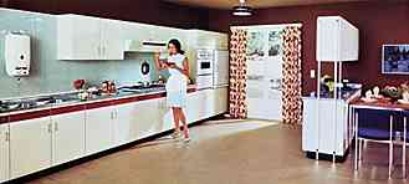 | |  | | "Es ist ganz gleich, ob Sie diese Küche in den bunten Pastelltönen wählen oder in elfenbein. Ein ganz besonderer Vorteil - die gesamte Küche ist innen und außen vollständig in Kunststoff gearbeitet. Es erfordert wenig Mühe, die Küche innen wie außen vollständig sauber zu halten." (1960) | | "Die Küchen von heute und morgen...Zeit- und raumsparend - dann ist die Küche die ideale Werkstatt der Hausfrau." (1960) |