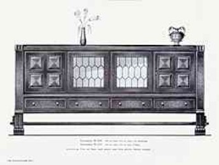 | | "Germania - 280 cm breit, 155 cm hoch - Ausführung: Eiche mit Maser, antik gebeizt, innen Eiche gebohnt. - DM 1250" |  | |  | | "Mehrzweckschrank - 210 cm breit, 163 cm hoch, 55 cm tief - Ausführung: Eiche mit Maser, rechte Seite für Garderobe eingerichtet, hinter der linken Tür oben ein ausgelegtes Gläserfach, Gläserfachtür mit Spiegel, über den Schubkästen eine ausziehbare Schreibvorrichtung.- DM 490" | | "Wohnzimmerschrank - 200 cm breit - Ausführung: Nußbaum gebohnt mit polierten Maserflächen, matt oder hochglanz. Oberteil innen Mahagoni anpoliert. Unterteil innen Eiche mattiert. Hinter der linken Tür 2 Schubkästen.- DM 395"