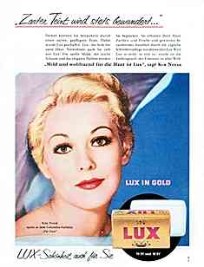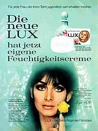 | | "Meine LUX ist mild und rein - so sanft belebt sie meinen Teint", Elke Sommer (1965) | | "Das Milde und Zarte an LUX - das ist es, was meinen Teint so behutsam pflegt!", Nadja Tiller (1966) |