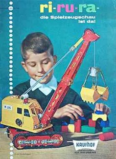|  | | | |  | | Kaufhof: "ri-ru-ra-die Spielzeugschau ist da!" (1962) | | | | Kaufhof: "Neues Spielzeug! Wer spielt mit?" (1957) |