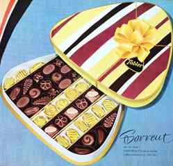 |  | |  | | Stollwerck - "Scharlachberg Meisterbrand Weinbrand-Bohnen" (1956) | | Suchard Jubiläum - "Hochfeine Sahne Schokolade"