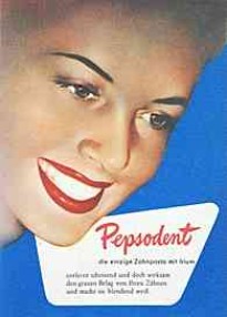 Pepsodent - "die einzige Zahnpasta  mit Irium entfernt schonend und doch wirksam den grauen Belag von Ihren Zähnen und macht sie blendend weiß."   Pepsodent - "die einzige Zahnpasta  mit Irium entfernt schonend und doch wirksam den grauen Belag von Ihren Zähnen und macht sie blendend weiß."   Pepsodent - "die einzige Zahnpasta  mit Irium entfernt schonend und doch wirksam den grauen Belag von Ihren Zähnen und macht sie blendend weiß."