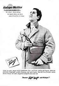 | |  | |  | | "Ohne seinen Herren-Knirps geht Karl Schönböck, der Kavalier des deutschen Films, nicht aus." | | "Bei Knirps-Wetter: Immer tip-top mit Knirps!", Sonja Ziemann - Mehr Werbung mit Stars und Prominenten der 50er und 60er Jahre HIER | | ""Knirps-Wetter" bring Dieter Borsche nicht in Verlegenheit. Seine Frau sorgt schon dafür, daß er seinen Herren-Knirps nicht vergißt." |
