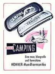 | |  | | Hohner Camping - "Eine neue, klangvolle und formschöne HOHNER-Mundharmonika" | | "Keine Angst vor Insekten-Stichen - GLOBUS MÜCKENSCHRECK schützt zuverlässig beim Camping, Baden, im Haushalt" | | "Bücking-Dreinahthosen gehören zum Camping!" |