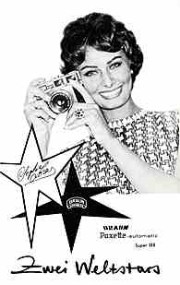 | | Braun Fotoapparat Poxette-automatic - "Zwei Weltstars", Sophia Loren | | "Mit der Rollei geht's leichter"