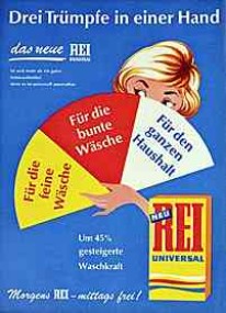 | | | | Wipp - "Für uns wasch ich perfekt" | | "Morgens REI - mittags frei! - Für die feine Wäsche - Für die bunte Wäsche - Für den ganzen Haushalt" | | |