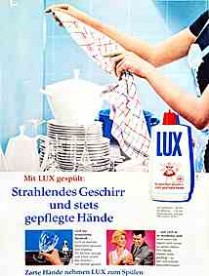 | | LUX - "Zarte Hände nehmen LUX zum Spülen"