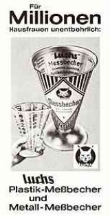 | | Luchs "Plastik-Meßbecher und Metall-Meßbecher" - "Für Millionen Hausfrauen unentbehrlich"