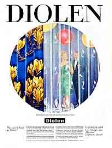 | | "immer erst sehn obs INDANTHREN" | | ""Diolen"-Gardine mit zartem Muster. Dazu ein schwerer "Diolen"-Rips-Vorhang mit überdimensionierten Magnolien-Motiven, stark durch die französiche Mode inspiriert." | | "Warum sind diese Kinder so fröhlich? Weil sie Geburtstag feiern. Und - weil sie Kleidung aus "Diolen" tragen. Denn kleidung aus "Diolen" ist weich, warm und angenehm."