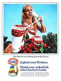 | | "Im Handumdrehen zu jeder Tageszeit köstliche Getränke und Speisen mit Nesquik" | | "elite - Fruchtig-frischer Joghurt. Noch nie hat Gesundheit so gut geschmeckt." | | "elite - Joghurt zum Trinken. Damit man ordentlich einen bechern kann" |