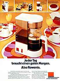 | Rowenta-Filtermatic - "Dieser Kaffeeautomat KG-22 kostet nur DM 79,80. Er filtert bis zu zehn Tassen Kaffee. Viel schneller und mindestens genauso gut wie Sie es können."