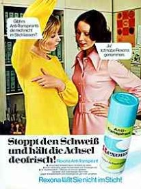 | | "Rexona läßt Sie nicht im Stich!" - "Stoppt den Schweiß und hält die Achsel deofrisch!"