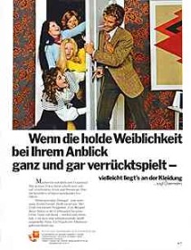 | |  | |  | "Wenn die holde Weiblichkeit bei Ihrem Anblick ganz und gar verücktspielt - vielleicht liegt's an der Kleidung ...sagt Overmann"