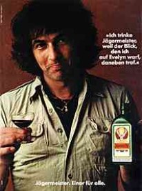 | |  | |  | | "Ich trinke Jägermeister, weil der Blick, den ich auf Evelyn warf, daneben traf." | | "Ich trinke Jägermeister, weil ich's dem Chef eben gezeigt habe - aber nicht das, was er eigentlich sehen wollte." | | Schlehenfeuer - "Für alle, die ihren Tee mit Schirm, Charme und Schlehenfeuer trinken." |