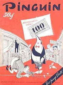 | Pinguin - "Für junge Leute", Herausgeber Erich Kästner, Türaufschrift auf Titelbild: "Zuzugsgenehmigung Abt. Anträge - Achtung! Bissiger Hund!" | | Pinguin - "Für junge Leute", Herausgeber Erich Kästner, Titelbild zur Währungsreform | | Das Wespennest "ist eine unabhängige satirische Wochenzeitschrift" - Titel: "Nie wieder da drunter! Wir wollen den Kriegsdienstverweigerungsparagraphen!" |