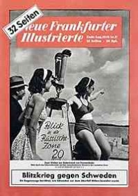 NEUE ILLUSTRIERTE - Titel: "Liebe kennt keine Grenzen! - ...und dann hob er sie über den Schlagbaum, als sie ihr "Ja" gesagt hatte. Sie war damit Deutsche geworden und durfte zu ihm hinüber. Er kam aus Hamburg, sie aus Innsbruck. Drüben liegt die französische Zone Ösrerreichs, vor dem Schlagbaum die amerikanische Zone Deutschlands. Das sind in der Tat verwirrende Zustände. Aber die Liebe kennt keine "Grenzen"."    Neue Frankfurter Illustrierte - Titel: "Zwei Welten am Badestrand von Travemünde: Blick durch das Scherenfernrohr auf den menschenleeren Strand in der russischen Zone" - Weitere Themen z.B.: "Aus dem Leben von "Mary" und "Elizabeth", den beiden größten Passagierschiffen der Erde", "Die Persönlichkeit im Säugling"