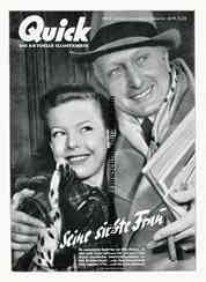 | | Illustrierte Berliner Zeitschrift - Titel: "Schönheit als Beruf - Bericht über Photomodelle" | | Quick - "Die aktuelle Illustrierte" - Titel: "Verführung am Zahltag - Neue Verkaufsmethoden in neuer Umgebung" - Weiteres Thema: "Wenn morgen Krieg wäre...", "Schnitte zur Schönheit - Geheimnisse aus der Werkstatt eines Gesichtsplastikers" | | HEUTE - Titel: "Schön sein - eine Kunst" - Themen z.B.: "Besatzungskosten: wer zahlt was?", "Mode für Backfische", "Träume auf Schaum - Siegeszug eines neuen Matratzentyps"