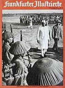 | |  | |  | | REVUE - Titel: "...denn sie wissen nicht, was sie tun - Papst Pius XII. forderte in einer Botschaft an die Welt ein internationales Verbot aller Atomwaffen." - Weiteres Thema z.B.: "Nur der Turm bleibt Ruine - Die Kaiser-Wilhelm-Gedächtniskirche im Herzen Berlins soll wieder aufgebaut werden." | | REVUE - Titel: "Der Urwalddoktor Albert Schweitzer - Arzt eines kranken Jahrhunderts" - Weiteres Thema z.B.: "Am verkehrsreichsten Punkt Deutschlands: Der Stachus in München ist ein typisches Beispiel für unzulängliche Verkehrs-Planung" | | Frankfurter Illustrierte - Titelbericht: "Weißer Herr bei roten Truppen - Indiens Ministerpräsident Pandit Nehru als Gast des "Rebellenführers" Ho Chi Minh in Hanoi" - Weitere Themen z.B.: "Wo der Groschen rollt - Im Spielsalon des "kleinen Mannes" - Geht es um Geld, Spannung oder nur Zeitvertreib?", "Unser Herz kennt keine Grenze - Die Klagemauer von Dresden" |
