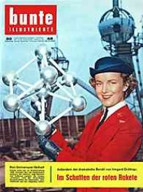 | | bunte Illustrierte - "Brüssel rüstet sich zur Weltausstellung 1958" | | bunte Illustrierte - Titelthema: "Die Geretteten der Pamir" - Weiteres Thema: "Waffen für den Druckknopf-Krieg - Revolution für die Armeen der Welt: Technik entscheidet über Sieg oder Niederlage "
