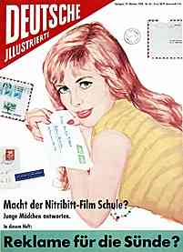 | | Funk und Fernseh Illustrierte - Titel: "Für Jazzfans ist Bibi Johns neuer Film "Wehe, wenn sie losgelassen!" ein wahrer Genuß, denn hier wird mit Temperament und Schmiß mal richtig auf die Pauke gehauen." | | Frankfurter Illustrierte - Das illustrierte Blatt - Titel: ""Schmollmündchen" heißt der letzte mimische Modeschrei für unsere hübschen Backfische - bisher nannte man sowas in einigen Gegenden Deutschlands "eine Prutsche ziehn"." - Themen z.B.: "Gesicher in meiner Hand - Bericht eines kosmetischen Chirurgen", "Das Wort "Mensch" steht nicht im Lexikon der Behörden. Sie müssen nicht menschlich entscheiden, aber sie können es. Nur tun sie es nicht immer." | | NEUE ILLUSTRIERTE - Titel: "Grit Böttcher - Der blonde Neuling aus dem Ufa-Studio hat seine erste Filmrolle in dem Streifen "Solange das Herz schlägt"" - Themen z.B.: "Hula-Hupp schlug in der Bundesrepublik alle Verkaufsrekorde - Wer huppt, hat mehr vom Leben", "Salvadore Dali - Ein Kauz in Paris", "Hinter den Kulissen des Buckingham-Palastes" |