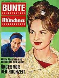 | |  | | BUNTE ILLUSTRIERTE - Titelthema: "Prinzessin Margaret und Graf Tony - Ganz Endland spricht von Margarets Sohn" - Weitere Themen z.B.: "Königin Fabiolas Bruder, Don Jaime - Schwarzes Schaf auf Freiersfüßen", "Land an der Ruhr - Männer, Stahl und lodernde Glut" | | BUNTE ILLUSTRIERTE - Titel: "Karim Aga Khan und Annouchka von Mens: Ärger vor der Hochzeit" - Weitere Themen z.B.: "Adenauer und seine neue Regierung", "Persianer - Was eine Frau im Winter träumt" | | NEUE ILLUSTRIERTE - Titelbild: Nadja Tiller - Themen z.B.: "Die Menschheit hat Platzangst", "Holländisch Neu-Guinea: Feuertanz zwischen Steinzeit und Atomzeitalter", "Eichmanns Chef: Heinrich Himmler", "Schleichend und heimtückisch...die ansteckende Gelbsucht"